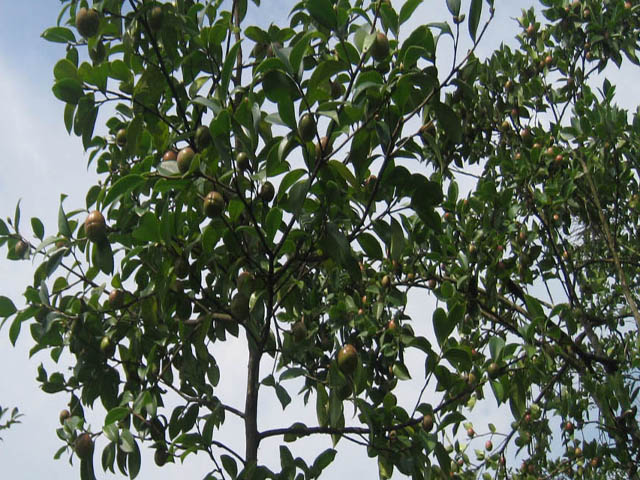 油茶经济寿命较长,一般是几十年,有的甚至上百年。由于在长期的生长发育过程中,有的茶林因人畜、病虫危害以及自然稀疏消亡,而使部分林地越来越稀;有的地方因茶籽落地,自然萌发更新,导致林内多代同堂,大小不一,参差不齐,这样造成了林相不整齐。同一林地不同地方的茶树稀密不匀,有的过稀,有的太密。林分密度大的,树叶交错,相互挤压,不但造成相互间的机械损伤,更严重的是同树的不同枝条间为争夺营养空间而引起垂直向上而致营养生长过旺,生殖生长衰弱,影响产量,且茶果的出籽率、出油率都较低,油质亦差。同时林内通透性较差,自然枯枝现象严重,也易引起病虫害。对疏密不匀或过密的林分,特别是一蔸多株的,保留健壮的植株,其余应全部挖除,间伐过密弱株。